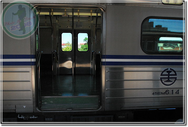 這就是我們搭的列車,編號「EM614」代表 EMU600 型電聯車,序號為「14」。台鐵最近的列車似乎都脫不了高麗棒子的陰影,韓國人低價搶標之後再將「機電」等重要組件轉包,所以可稱之為「披著韓國皮的聯合國」車種。