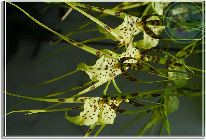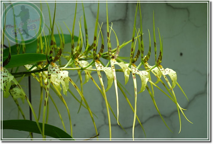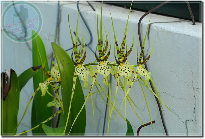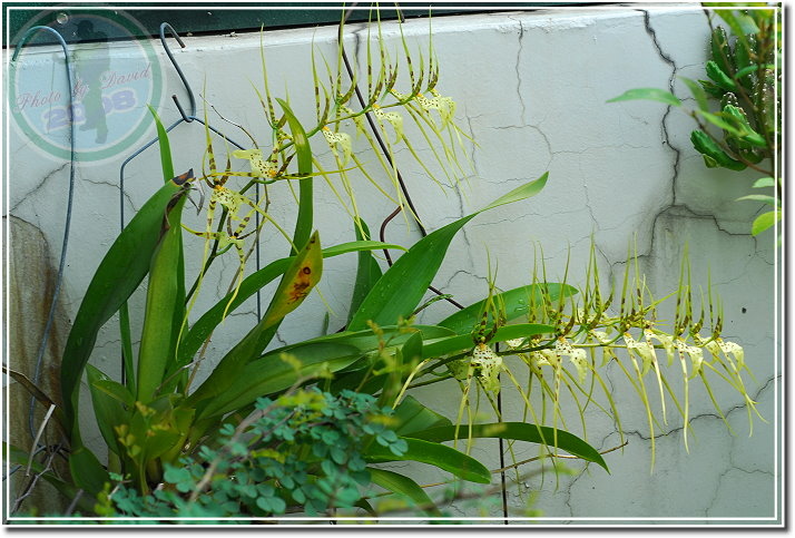 我認為文心蘭是蘭花裡最容易照顧又最準時開花的。這盆花好像是同事分株時送我一小盆,當時也不知道花色究竟如何?貧脊的介質參雜著碎石,多年來就掛在露台的女兒牆上,除了颱風來襲會將它放到地面,其他時間就清水澆灌而已。