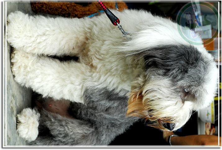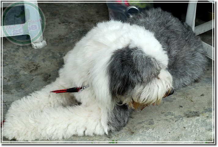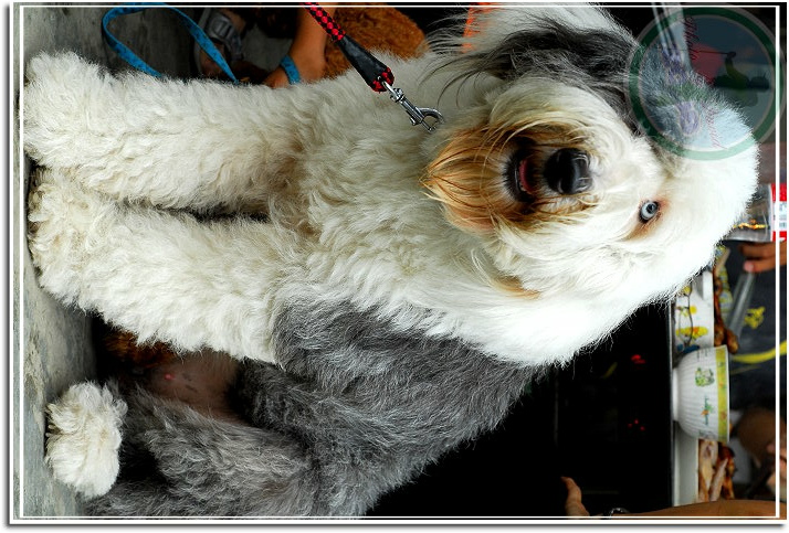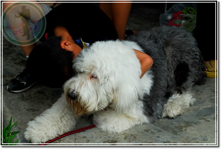 禮拜天參加學校的活動,個頭小小的媽媽就帶著這麼條大狗,毛茸茸的、趴在地上溫馴乖巧的模樣,旁邊的小朋友抱著牠,在身上磨蹭也不以為杵。