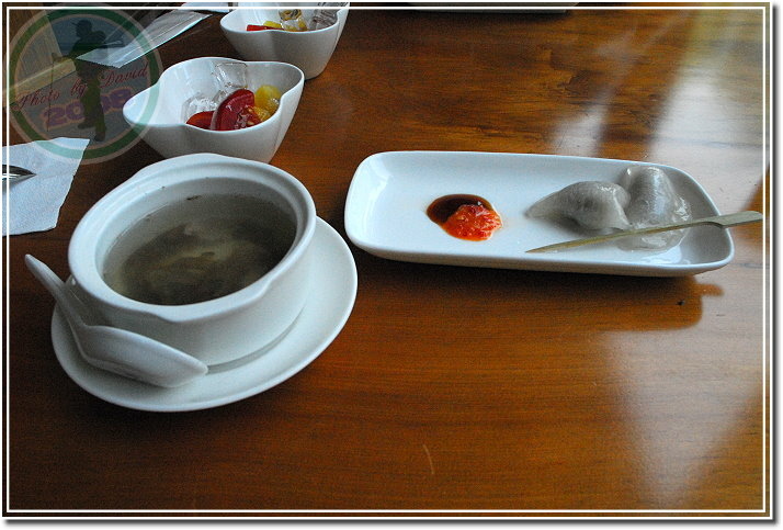 小廝遞上菜單,果然就圍繞著客家美食打轉,只是這樣的價位必然有所不同。沒光顧過就沒有太多顧忌,點個看來即使廚師打瞌睡都能調理妥當的。另方面實在是坐下來更發現庭園打理仔細,向來是視覺動物的我無瑕對菜單裡的餐色一一斟酌。