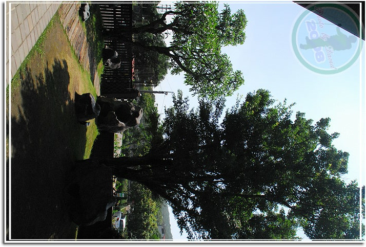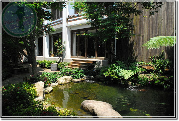池邊彎彎曲曲的通道靜靜躺在樹蔭下,原來別有洞天,路徑的另一端連結著蒐集木雕的展示場。只是,外頭的景色好,好到抽不出時間跨進門去。