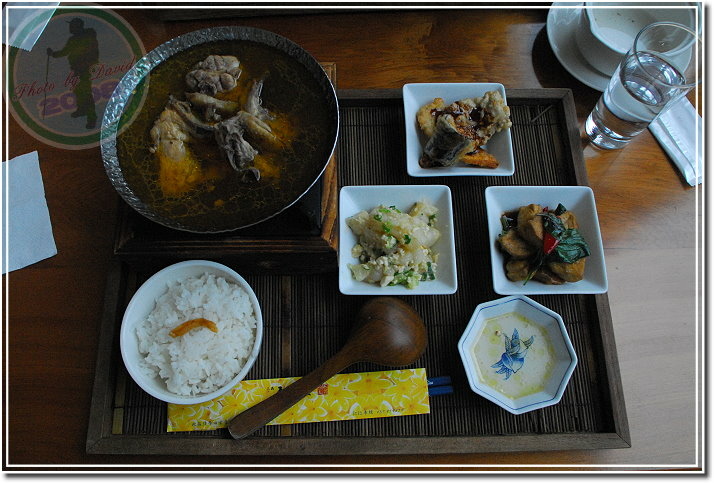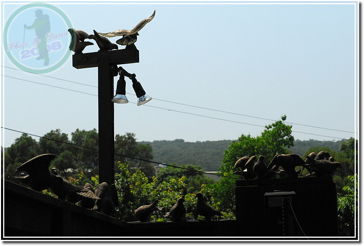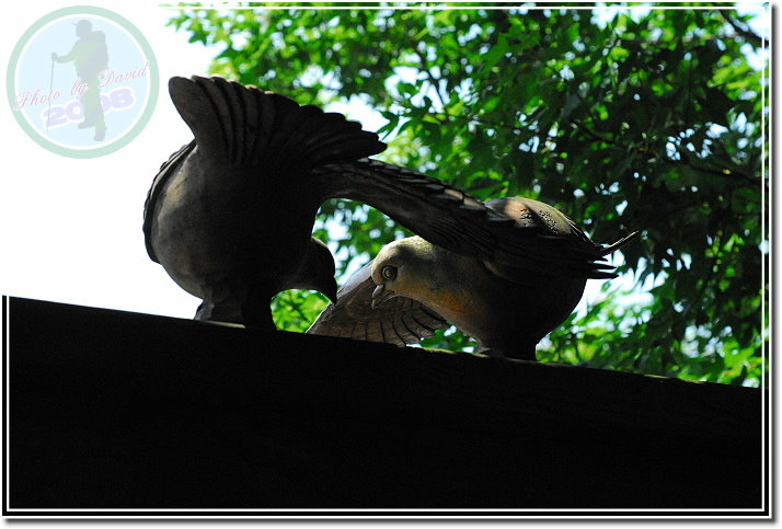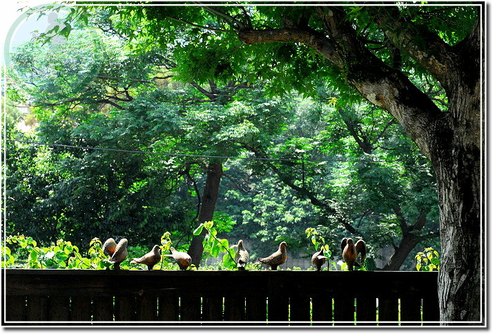 站在路邊才清楚地瞧見門口種了一棵雞蛋花,斑駁蒼老與顯然細心雕琢的樹幹說明店東有極高的品味。鑄鐵大門搭配原木圍籬,籬上還錯落地擺上木雕鳩群,木鳩隻隻神態各異...所以店名叫「居鳩堂」。取名「居鳩」,就字義上的解釋:鳥是極其膽小謹慎的動物,如果願意來居住、棲息,想必這一定溫暖、平安、適合人居之處。如果按客家話解釋「居居鳩鳩」,就有高朋滿座之意。可見主人必是個品味極高的客家人。