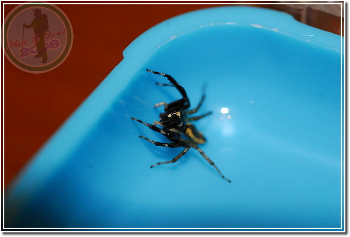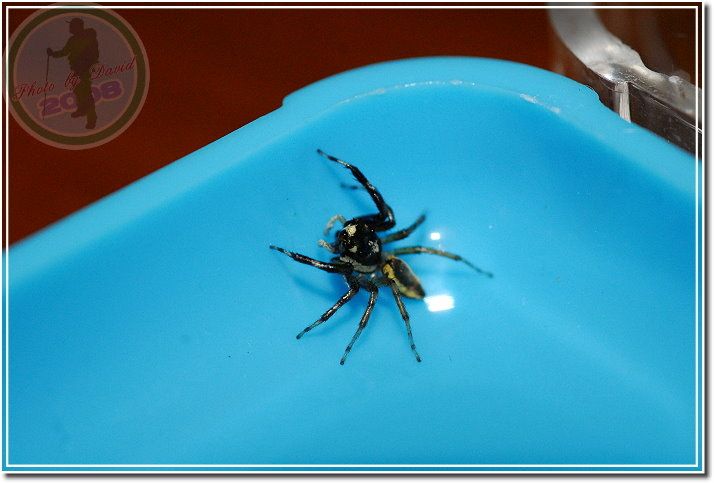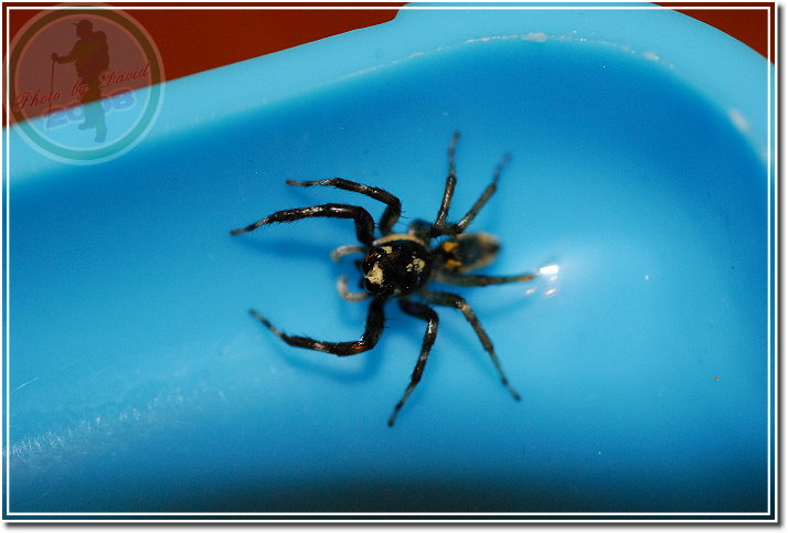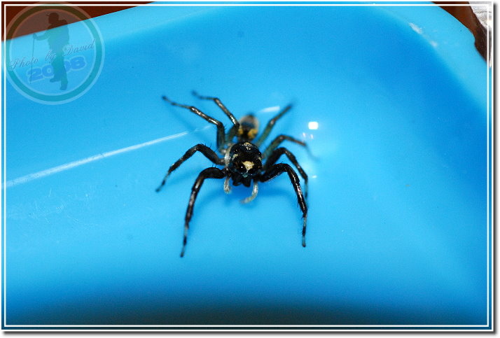 並不是每一隻黑條眼鏡斑蠅虎都有明顯易認的「眼鏡斑」,未成熟的雌蛛、雄蛛都可能缺乏這個據以為名的特徵。這就是雄黑條眼鏡斑蠅虎,大概很難與雌蛛的長相連結在一起。 雌眼鏡黑條蠅虎