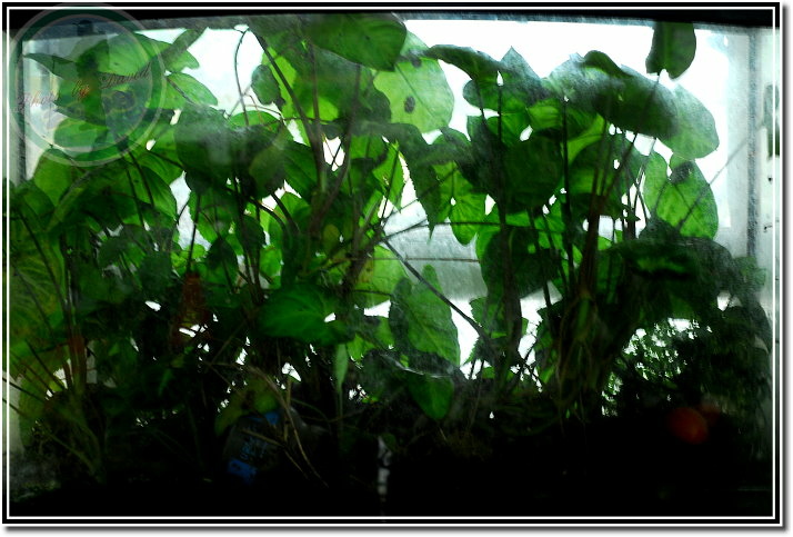 離水的小蛙通通到葉面上,隨著時間越久黑色的尾巴就越短。幾天不到,原本冷冷清清的水族箱變成摩肩擦踵的「市集」。到操場撈取小蟲子來餵食,除了原有的青蛙努力捕食外,早熟的小蛙也加入搶食行列,甚至有些還可看見一截黑色的尾部就開始跳躍、進食,成熟的速度比我想像中還要迅速。今天一天利用空檔捉了三次小蟲子,下班前觀察竟然只剩零星幾隻。