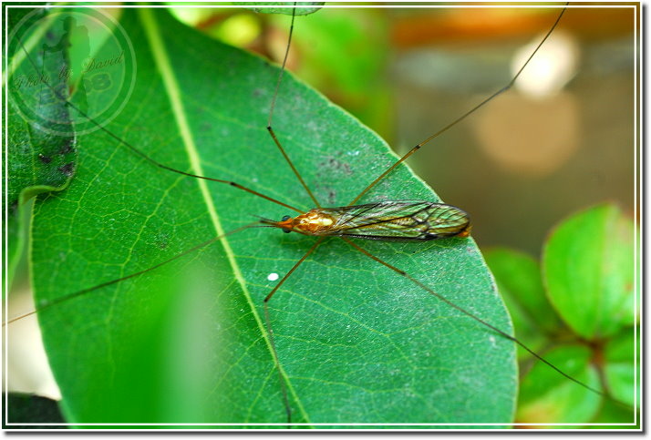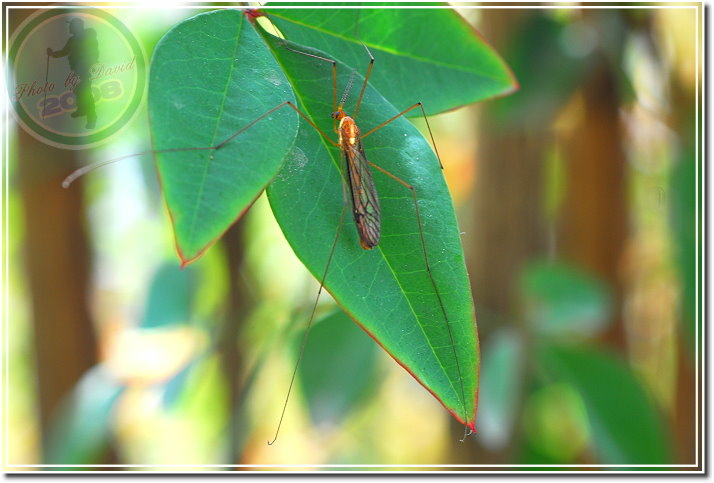 花葉上最近常出現這種大蚊,以前不了解,想說被小蚊子叮了都奇癢無比,若是被這種大蚊叮了啟不滿地打滾?後來才知道他叫做「泥大蚊」,成蟲之後就不吃不喝,只負責傳宗接代而已。牠應該是在花圃後面的小水溝裡長成的,天氣暖了活動力也旺盛了。