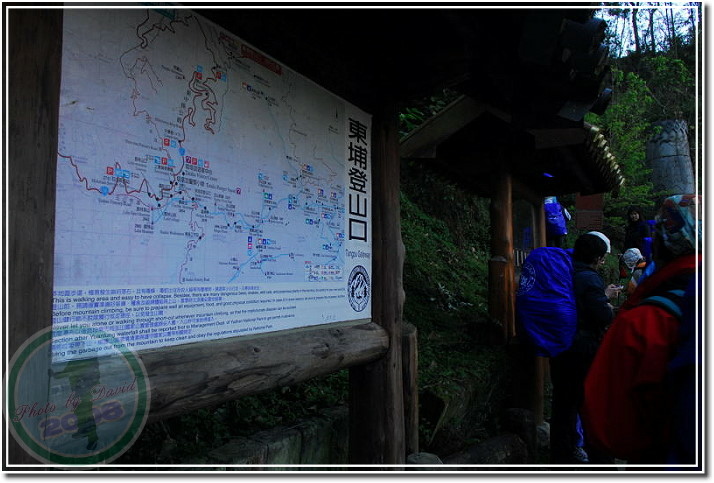 由東埔村在往前行幾百公尺就可以看見八通關古道的「東埔登山口」,近幾年因為東埔溫泉聞名,古道也開放由東埔到雲龍瀑布段供遊客健身覽勝,再往裡頭走則需要向玉管處申請了。登山口有個告示牌張貼八通關古道的地圖,也標示著各登山路線的狀況,除了到雲龍瀑布之外,幾乎所有的路線都標示著「封閉」。