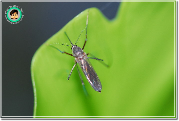 這是隻晏起的蚊子,蹲在山蘇葉子上,個頭很大所以我澆水之前能看見她。相信她就住在這裡,每天與我們一起上班八小時,但是我只知道她「是蚊子」,究竟是哪一種蚊子呢?每天打蚊子、在網路上搜尋了老半天、借來昆蟲圖鑑...還是只敢說「可能」是「熱帶家蚊」而已。