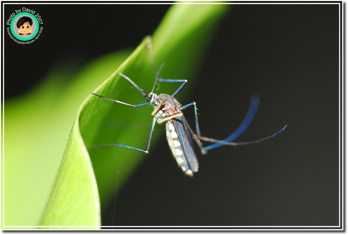 熱帶家蚊體長5至6mm,前胸和背板佈滿長毛,雄體觸角比較發達,但因為我只看到單一個體也無從比較起。她白晝就潛藏於室內,晚間雌蚊就四處叮人,雌蚊吸了血之後四、五天即於水溝產卵。