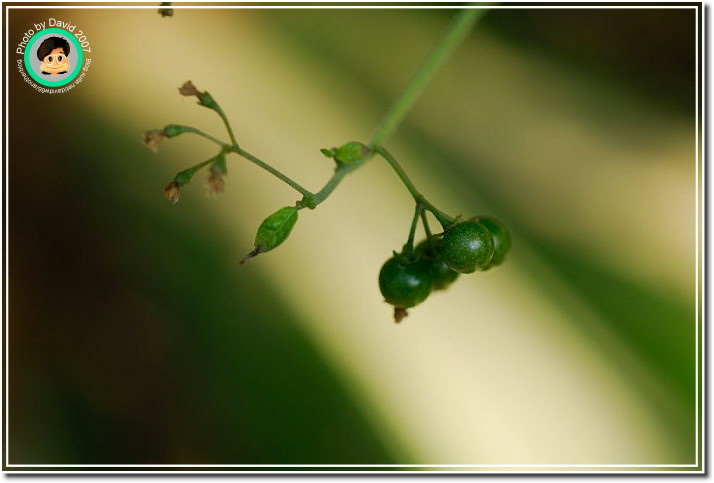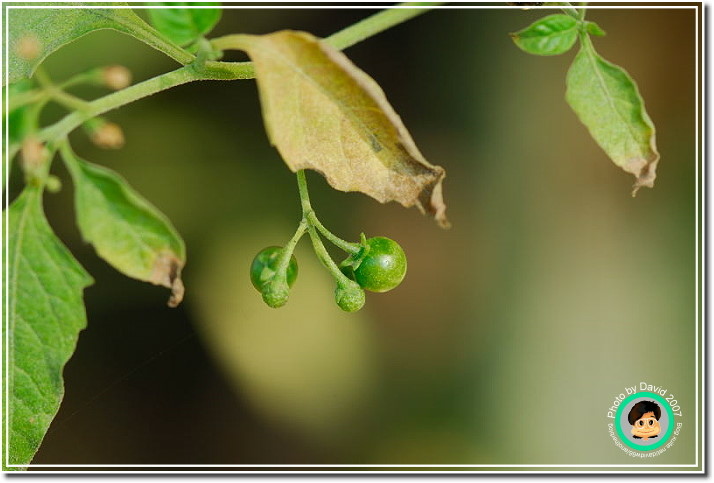 龍葵,一種常見的原生野菜。不過先人沒有將它納入平日食用蔬菜,必有其原因。龍葵生鮮的植物體和未成熟漿果會造成頭暈、噁心、嘔吐等症狀。她的成熟漿果呈現黑色,倒是略酸甜,小時候常常採食。不僅人愛吃,連小鳥都吃了而到處為他灑種,因而校園裡常可以看見忽然冒出頭的小龍葵,長錯地方會被連根拔除,當然就沒有機會結果。記得前陣子有老師為了自然課找龍葵,還真的需要時反而找不到。這一棵在大樓前面的花圃裡,有幸可以存活到漿果轉黑,好想偷摘來吃,可是又想到校園裡常常消毒,噴的不知道是什麼藥,算了...還是保小命要緊。