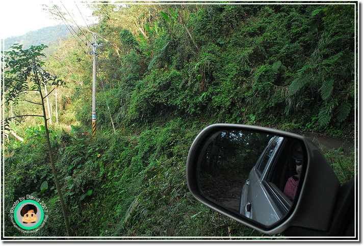 既然資訊明朗就出發繼續完成路程,往上不久就有伐木區,應該是私人造林成材收成吧,路有點泥濘且越走越小。後來還真得好長一段路只有一台車的寬度,甚至最後跟車的土肉桂還告訴我,轉彎的時候我的車有一半的輪子跨在路外。