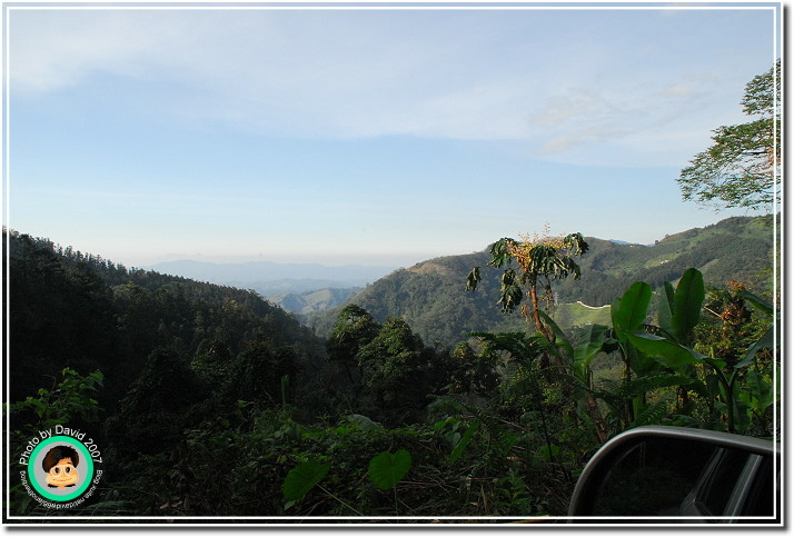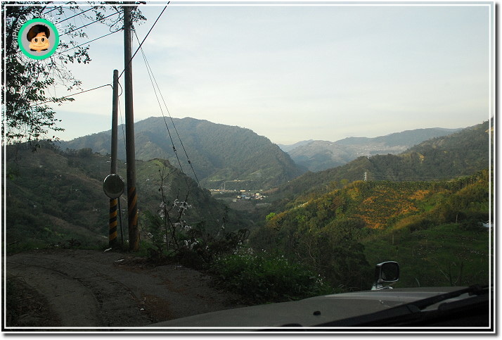 一進林道就後悔了,還沒到若茵農場就先會了幾次車,其中一次還因為對方同為休旅車,必須倒車十幾公尺,找個更「開闊」的地方小心翼翼地「錯身而過」。路的左邊是深谷,視野開闊,可以看到很遠的地方,只是相機似乎沒有人的眼睛精密靈巧,肉眼看得出清楚的東西透過鏡頭總要打折扣消失一大部分。