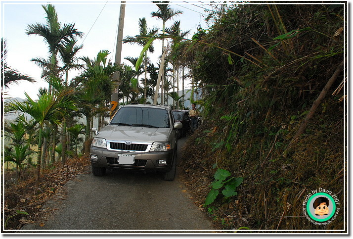 這一端山泉汨汨流下,水就由路面漫過,心裡一則以喜一則以憂,喜的是「好個林道,果然原始」;憂的是「接下來的路都是這樣嗎?泥濘?崎嶇?再往裡頭怎得了?」不過,過了這個彎之後對面來了一台老嘉年華,一位有點年紀的「小姐」載著白髮蒼蒼的老祖母。頓時信心大增,既然這樣的條件都能在這裡出入,我實在找不到理由回頭。