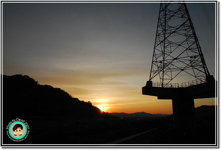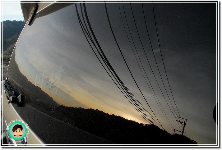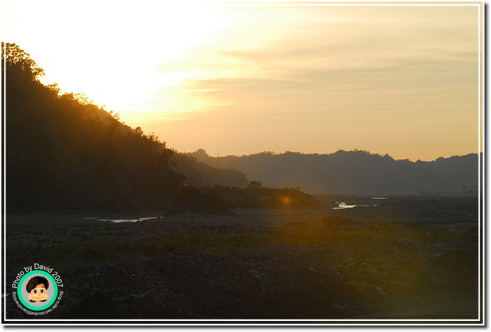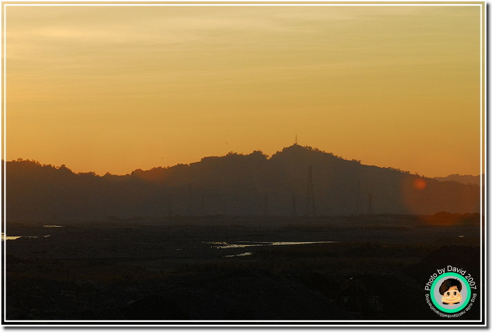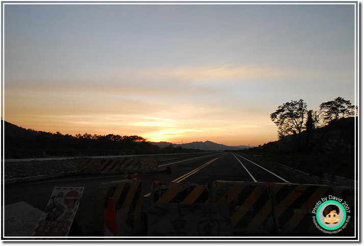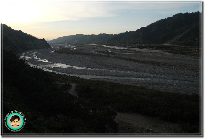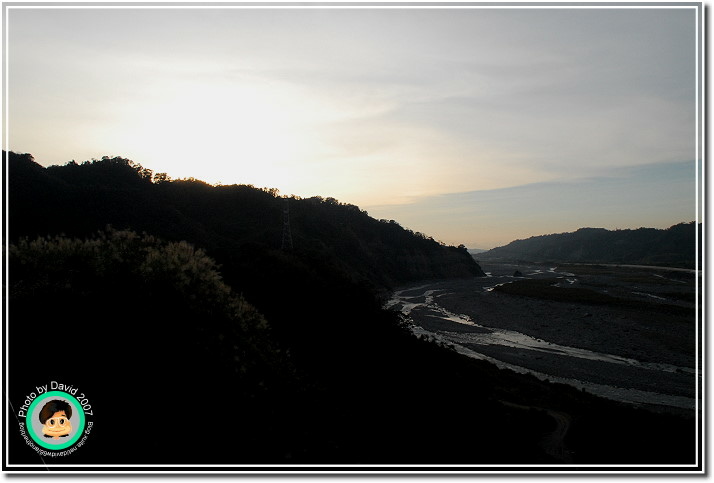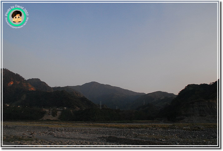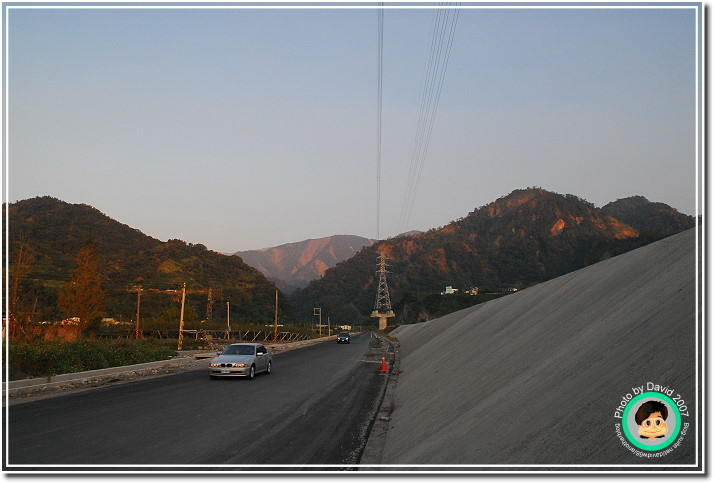在自由村停下來拍了幾張夕陽餘暉中的大安溪,渡過白布帆大橋,我們在河堤路邊忍不住停下來欣賞。回頭看看剛剛翻越的山頭,已經被陽光染成偏紅色了。