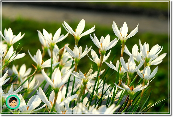 這些蔥蘭開在校園的國父銅像前面,如果不開花就像一堆雜草。今年開得特別美,一片白花映著夕陽。