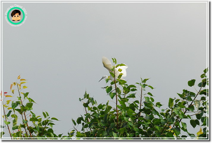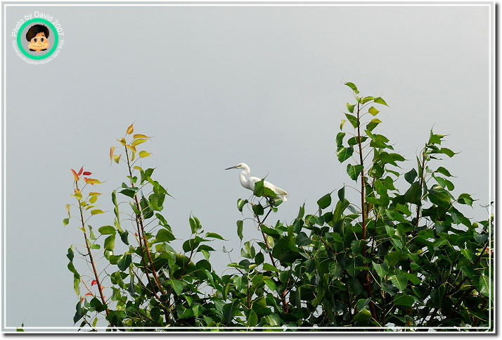 下午發現她趁著人少,偷渡進水生植物池來吃魚。不過等我把車停下來、備妥「小鋼炮」,才一露頭,她就機警地飛到菩提樹上觀望。遠遠地多拍幾張,她大概意識到再下來覓食的危險性太高,拍拍翅膀就往牆外飛去。