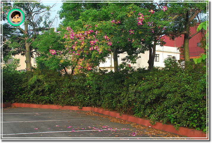 北邊沿著圍牆有排美人樹開花了,花兒是豔麗的紫,如果靠近一點還可以發現有些紋理值得玩味。他們是後操場完成之後的先驅植物,看他們這麼朝氣蓬勃,很難想像其實他們活在一堆鵝卵石、柏油路面上面。