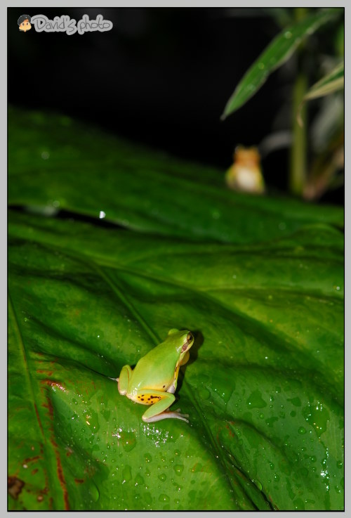 樹蟾有個名符其實的俗名「雨怪」,形容她總在雨天裡鳴叫。下午中午落下午後雷陣雨,晚間氣溫降了,雨怪也在房子周圍開起派對。可能是氣溫居高不下,終於可以放輕鬆點,幾乎所有的樹蟾都出動了,而且很容易就可以在葉子上找到。