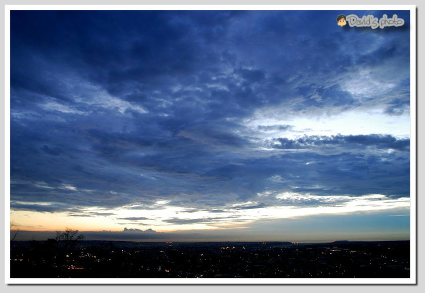 白天看雲覺得好濃重,藍天、白雲壁壘分明。傍晚載兒子上課,雖然陷身水泥叢林之中,但直覺...傍晚的天空好美。心裡游移,想找個海闊天空的地方賞彩霞,卻又擔心時間。