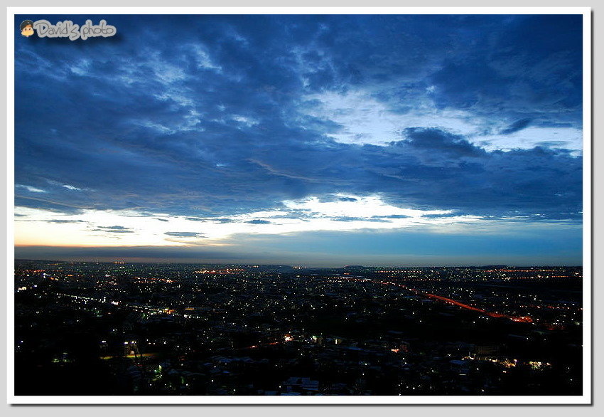 沿途加足油門,正值下班時間車子很多,前頭的車龜速前進,一眼看著路況隨時準備超車;一眼緊盯著後視鏡:太陽走慢一點吧。過了公園,行路人少了,坡卻陡了,再將油門往下感。到了稜線,夕陽早已西沉,不過彩霞才正精彩,都會也準備妝點華燈而已。