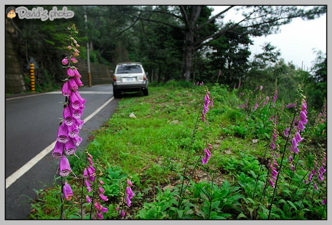 時間不允許遠道又想要鍛鍊體力、紓解疲累的身心,我也會自己驅車上山。今天上到31K,雨終於下來了,泡不成茶,也煮不成麵,索性繳了門票往上走,和雲比高,也許雲會偷懶爬得不夠高。過了40K之後路旁出現熟悉的植物,一樣的紫、高聳的花莖、鈴鐺般的花型,不就是「毛地黃」嗎?五月份曾經在花市發現改良品種的毛地黃,據說可以越夏。但到了梅雨季,花被淋得七零八落,植株則在花盆裡苟延殘喘;我還沒有放棄,嘗試著讓她活到天氣轉涼也許會恢復生機。毛地黃本來就屬於溫帶花卉,台灣的高山氣候涼爽,自然他「落草為寇」。只是沒想到她在森林樂區裡已經成為優勢植物,不知道是人為散佈,還是自然繁衍,一個區塊一個區塊旺盛地成長。