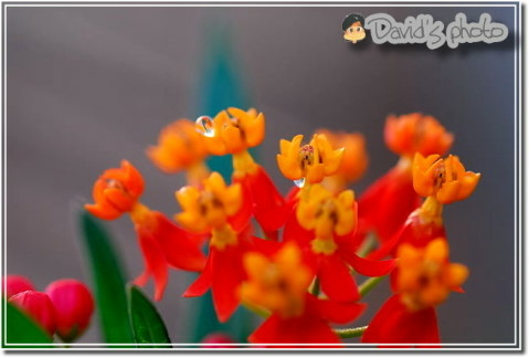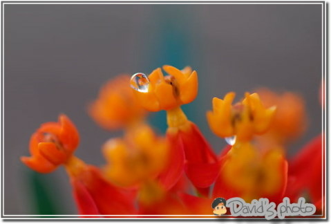 只有冬天的馬利筋能葉脈完整的艷麗綻放。在夏天,樺斑蝶總以「蝶海戰術」吃光所有的葉子,甚至不放過莖上薄薄的綠皮。沒有刻意噴灑水珠,應該是結露吧,蹲下來細細的觀察總有令人驚奇的收穫。