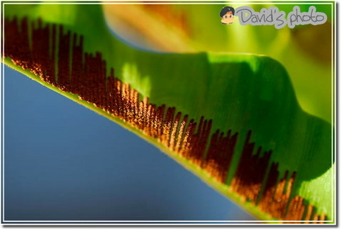 第一次看到「斛蕨」是在老家的陰暗水溝裡,特殊的假葉一面托著營養葉、一面承接著日積月累的粉塵,在艱困環境默默地翠綠起來。以蛇木板種在陽台,似乎有點水土不服。不過,襯著朝陽透出葉脈卻有十分的綠意。