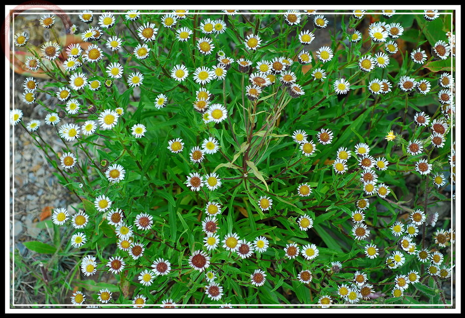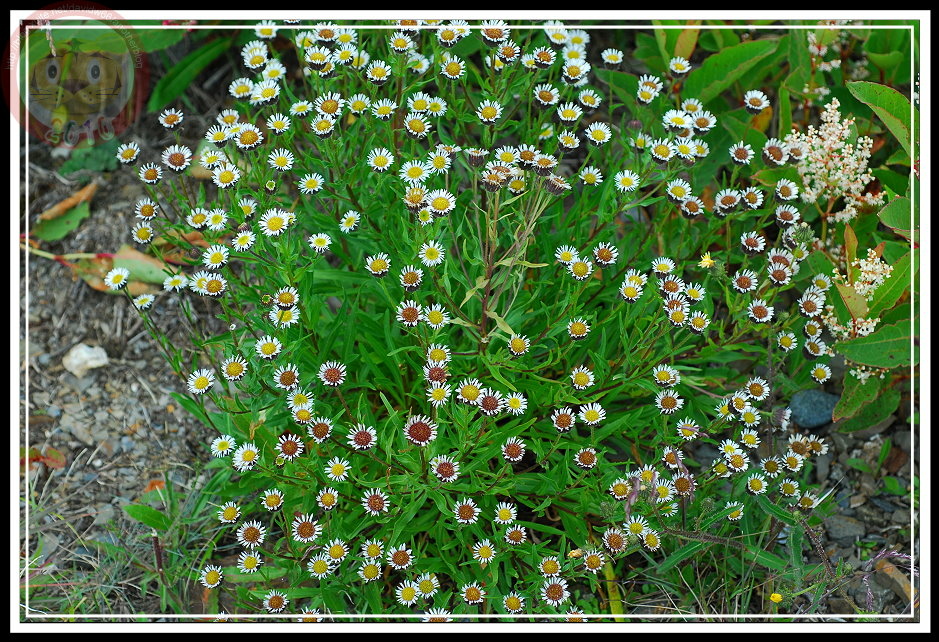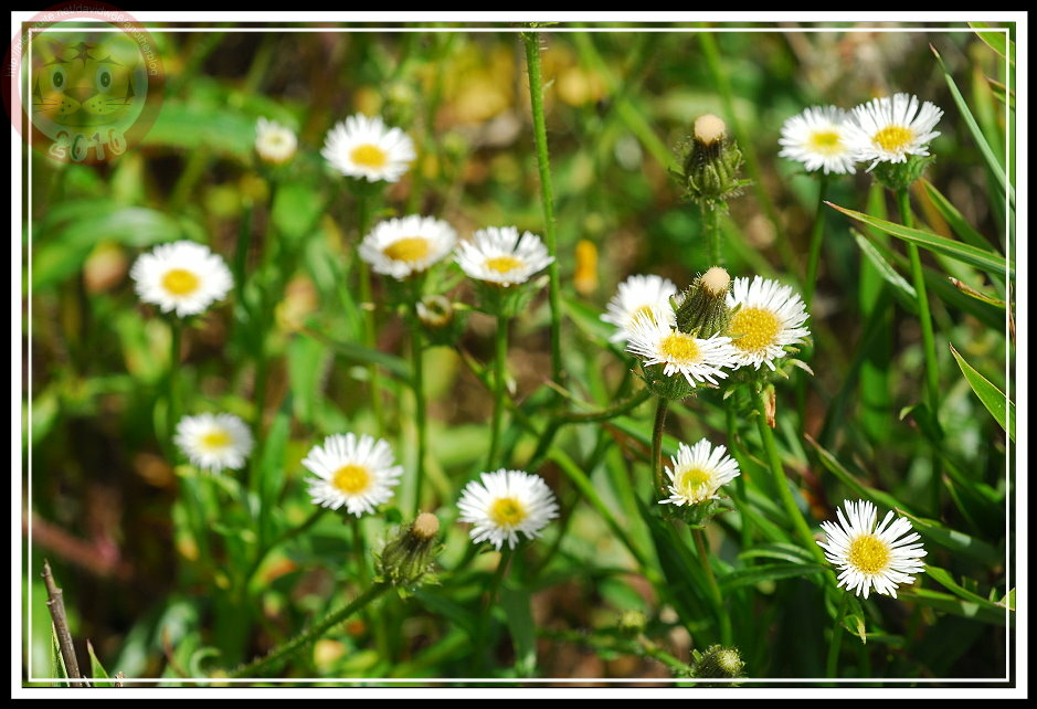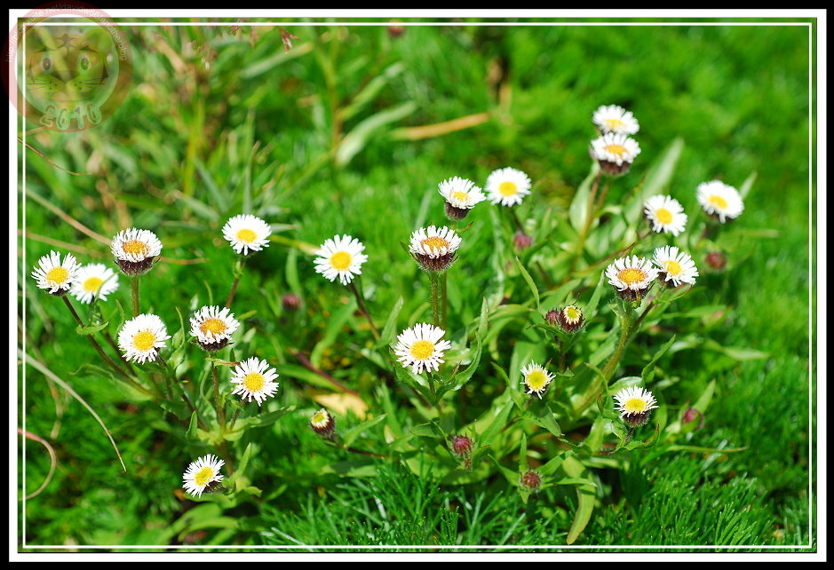 在八仙山林場也看過玉山飛蓬,就在停車場到靜海寺間的樹林,單株高高瘦瘦的玉山飛蓬,雖然營養不良,卻也有幾分清瘦的玉樹臨風之感。在合歡山主峰的玉山飛蓬就熱鬧且強壯多了,整叢在碎石坡地開,白色的花雖然有有法國菊的長花瓣,繽紛卻一點也不惶多讓,就算本土對抗番邦來的外來種勝出吧!而且「飛蓬」名字取得好,有點江湖俠士味兒,也許改天可以寫篇武俠小說,玉山飛蓬自然是可以增進十甲子功力的仙丹妙藥。